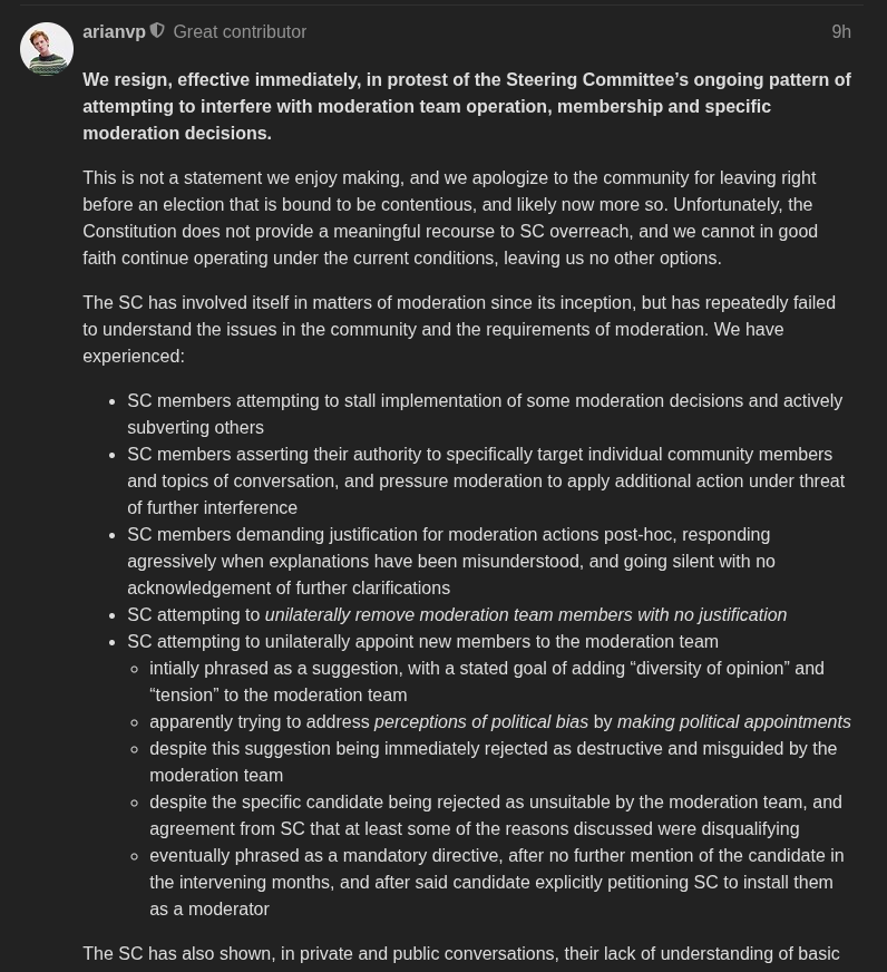 Third, their fragile egos can't handle criticism. If you dare point out flaws in their code or suggest improvements, they'll cry muh transphobia and try to get you banned from projects. They're toxic as hell and poison the community with their bullshit drama and hypersensitivity.