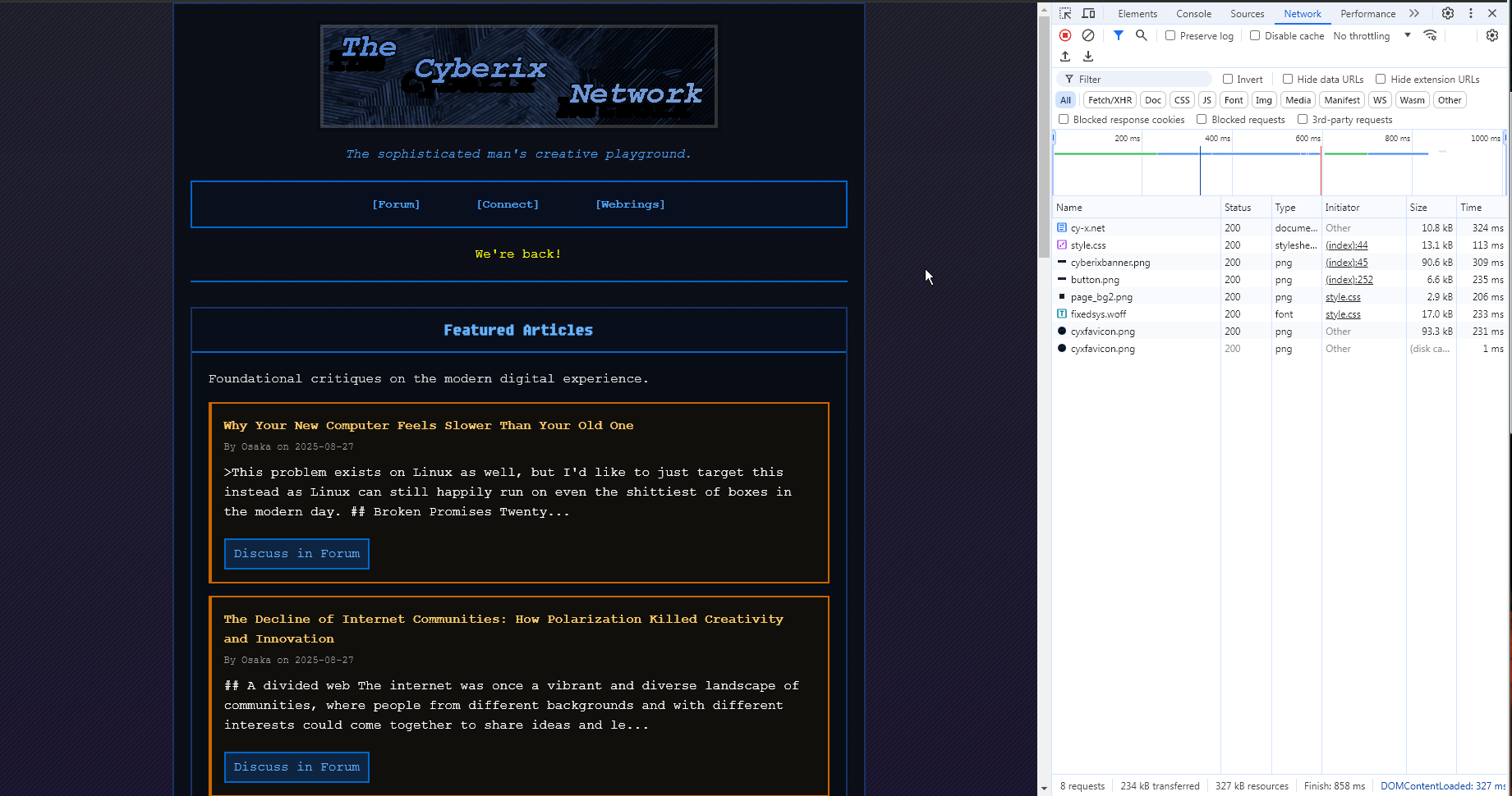 Anyways back to the old internet... there was no privacy by default as MITM attacks are trivial on HTTP, the others probably had other vulnerabilities that are trivial to exploit that do not consider your privacy(aside from XMPP). They were resistant to commercialisation. They were resistant to tracking(though tracking as a whole with the internet was more of a thing after cookies existed). It was absolutely not community ownership. Just as the owner of Cyberix is a benevolent dictator of this forum and can ban people at will and volition(even if they choose not to, they have the power to), it's not community owned. You also do not own your data. As soon as I make this post, you own all the associated data effectively. And besides, an open protocol still led us into all this mess! The modern internet is all built on "open protocols"! You want something that maybe goes a different way? Look into the Gemini Protocol, but to me it's kind of a dead end. Maybe you'll have better luck?