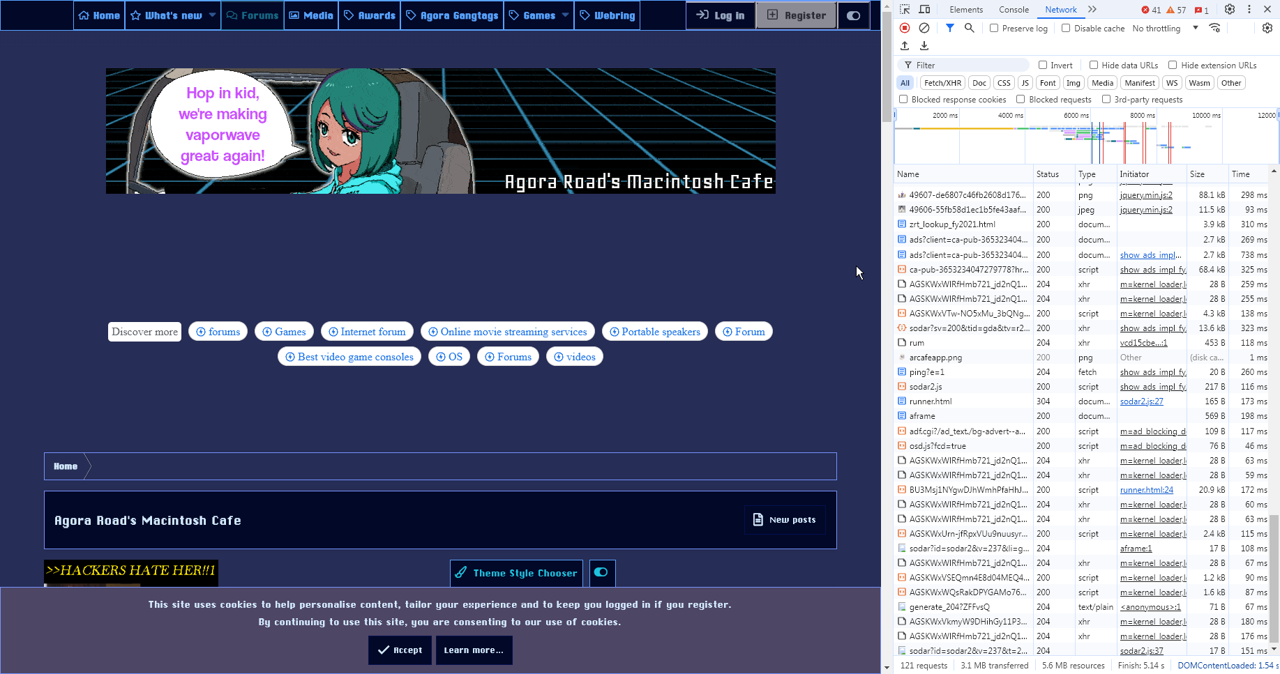 I use Brave with adblock so maybe that contributes to the load times compared to using Palemoon. I cede the point, I suppose it is slower, but not slow enough for me to find it disgustingly worse than other modern internet sites. I've attached an image of my speeds for Agora
