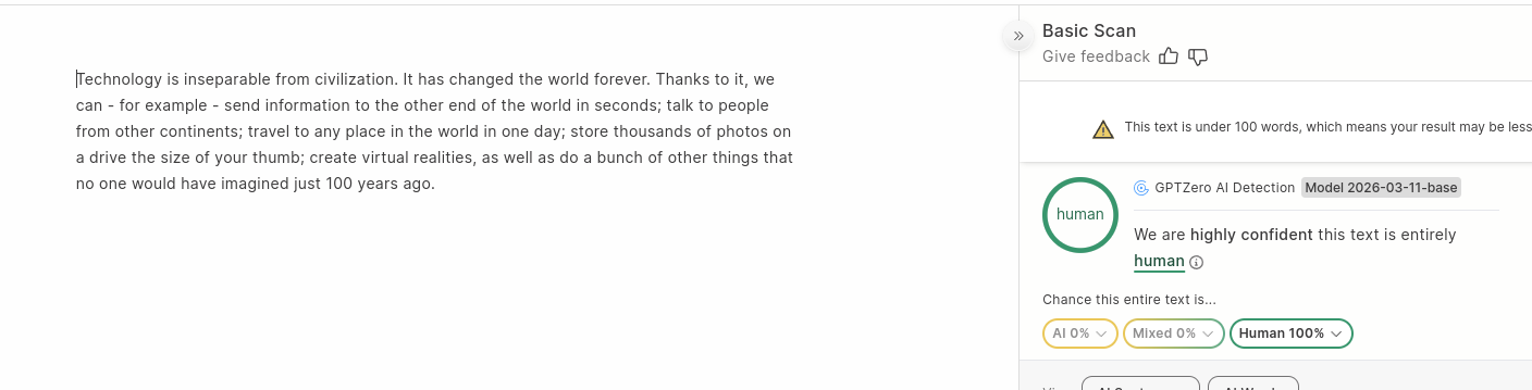 : Ah, I see what you're asking! You're wondering if the text you wrote was AI-generated.