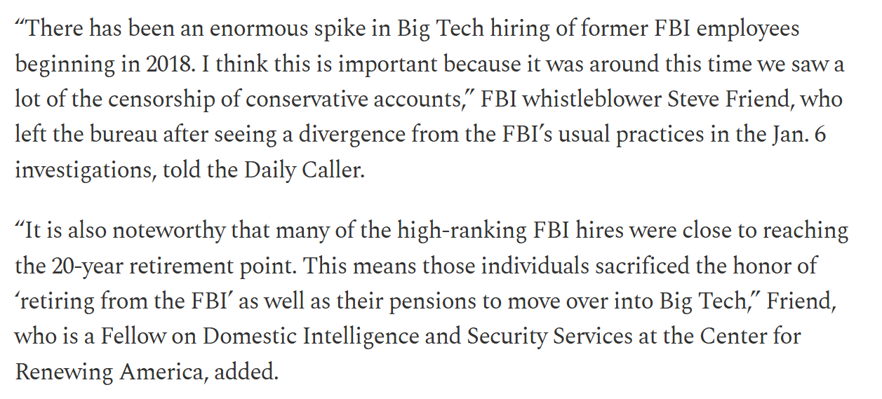 It is not inherently suspicious that ex-spooks go to Silicon Valley companies; many have expertise in cybersecurity and related fields. What IS suspicious is that so many flock to the content control/moderation roles (Trust and Safety etc).