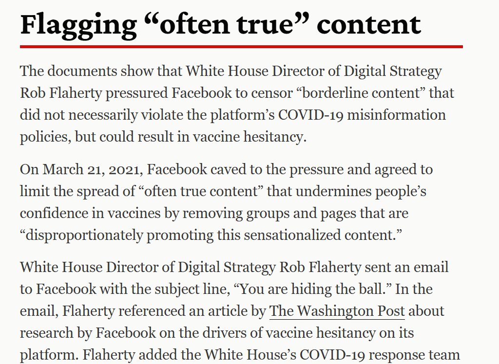 Whenever I complain about enormous Internet platforms engaging in giga-scale censorship and repression starting in 2016, I get a horde of morons telling me it's their First Amendment Right as private actors. These people are natural slaves; what matters is the censorship and not who does it. Open discourse and freedom of thought are intrinsically important, not because they're in the Constitution (roughly 3/4 of which is at best honored in the breach anyways). They're also wrong; governments have been involved in these censorship efforts from the beginning.