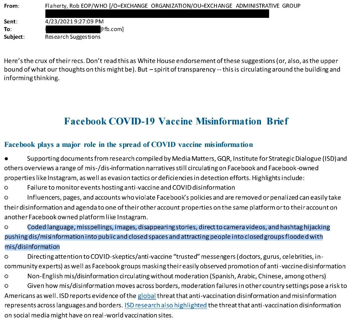 Biden's Surgeon general similarly demanded social media companies redesign algorithms and impose clear consequences on violating accounts to reduce "misinformation."