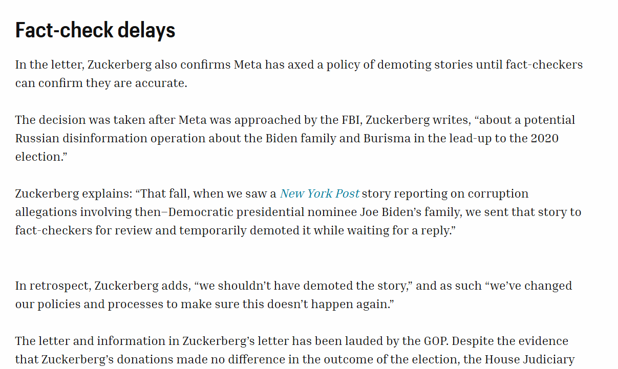 FBI pressure helped lead Facebook to censor the (true) New York Post Hunter Biden laptop story during the 2020 election.