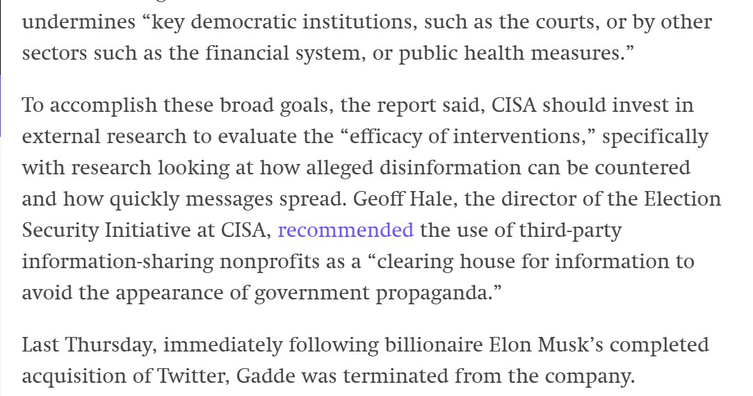 CISA (a DHS sub-agency) explicitly talked about how to invest in third-party NGOs “clearing house for information to avoid the appearance of government propaganda.”
