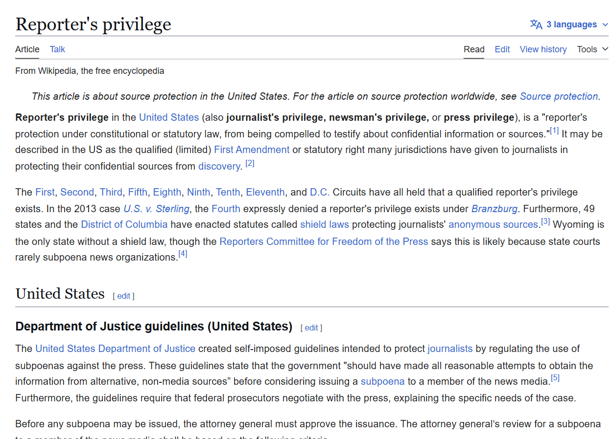 Stepping away from direct subsidies for a moment, courts and the administrative state in the US have effectively created "reporter's privilege" not to have to reveal sources to official reporters. Non-reporters do not get this.